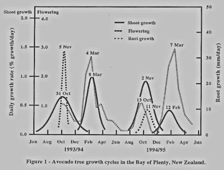 recorded over 3 years (1993- 95) on 12 'Hass' trees grafted on 'Zutano'